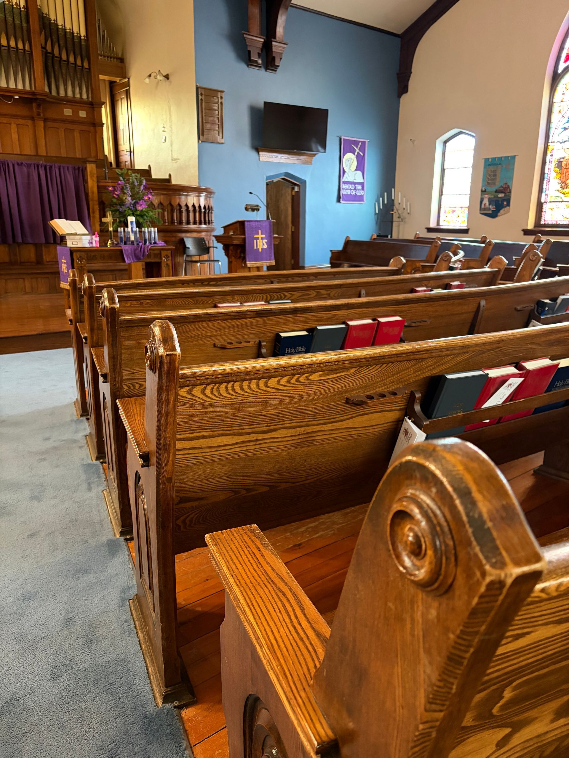 In 2013 the chancel was updated to make it more functional and accessible, creating one large, low platform with a ramp, and new stairs leading to the choir loft. Great care was taken to preserve the beauty of our sanctuary which is also enhanced throughout the year by the efforts of our Banner and Decorating Teams.